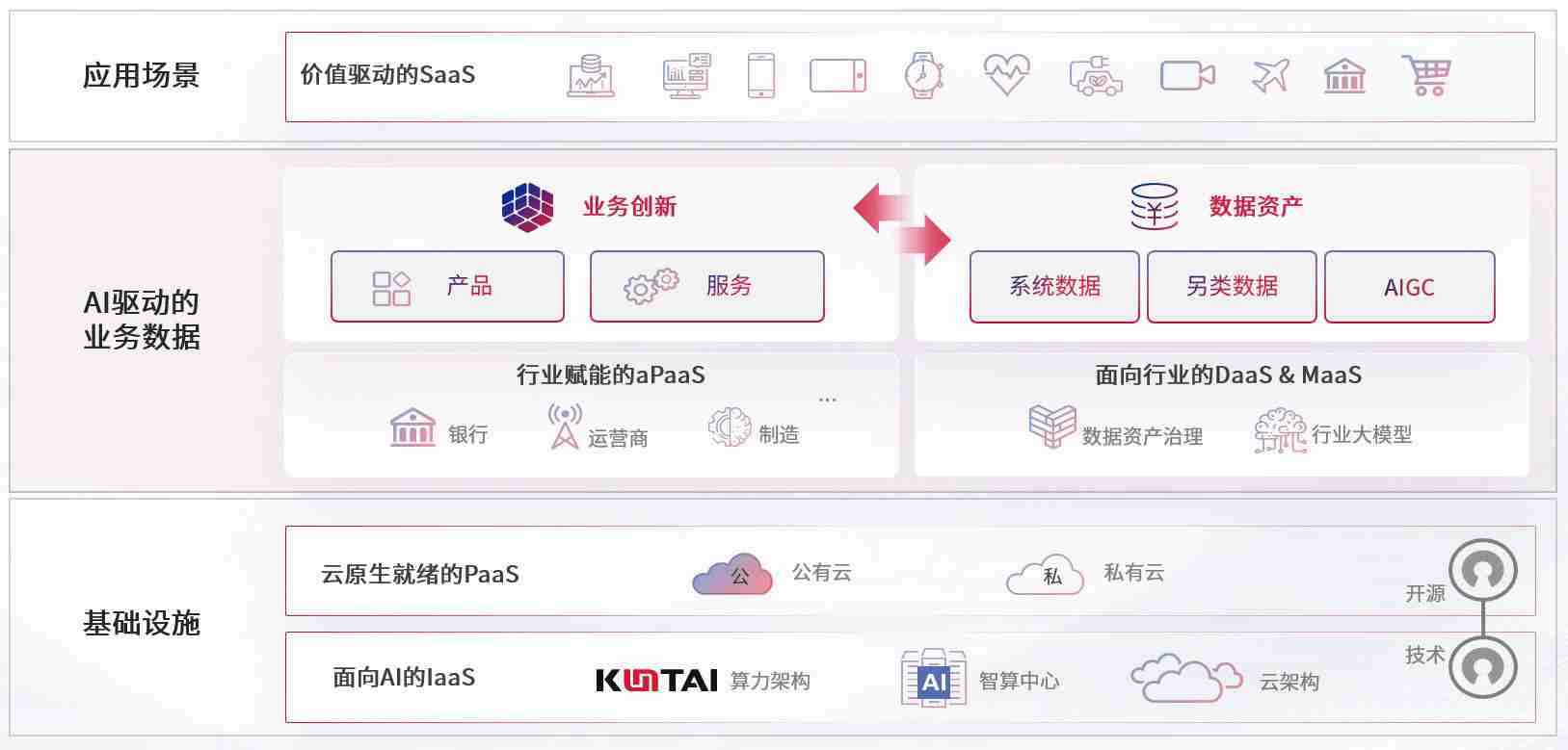 数字时代,,,,围绕企业数字化转型的关键要素,,manbet数码开创性的提出数云融合战略和技术体系框架,,,着力在云原生、、数字原生、、、AI原生和信创产业上架构产品和服务能力,,,,为处在不同数字化转型阶段的快消零售、、、汽车、、、、金融、、、、医疗、、、、政企、、、教育、、、运营商等行业客户提供泛在的敏捷IT能力和融合的数据驱动能力,,,构建跨界融合创新的数字业务场景和新业务模式,,,助力企业级客户建立面向未来的核心能力和竞争优势,,全面推动社会的数字化、、、、智能化转型升级。。